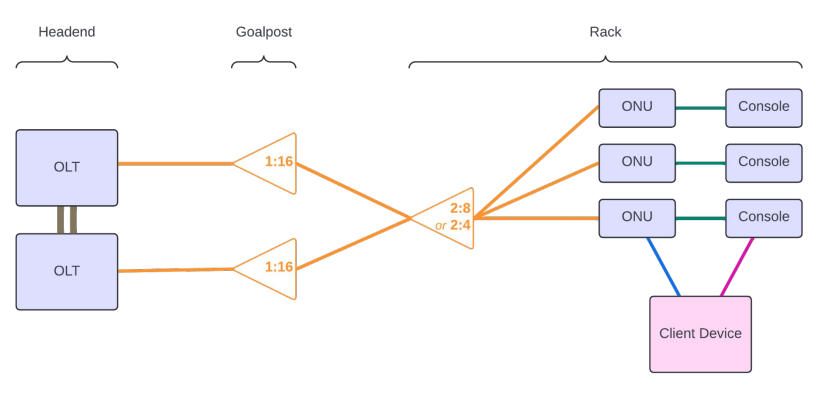 Meta also has a high availability on the PON network by making use of 2 x OLTs feeding a 2:8 or 2:4 splitter.