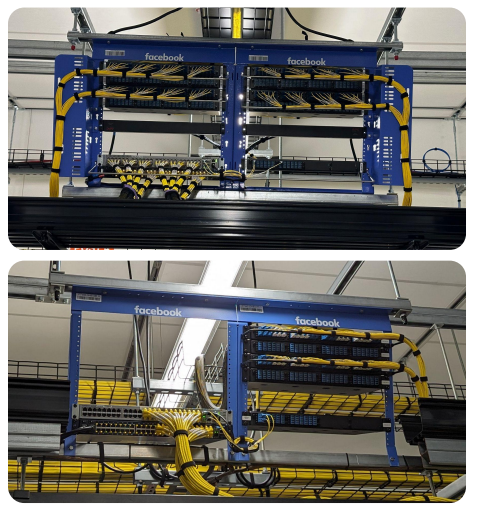 By using PON (Passive Optical Network), Meta has designed to terminate copper coming from devices within the rack so that outside of the rack is just (lighter) optical fibre (only). Copper, just for management alone at their scale, was quite a lot of cables. An end-of-row device mounted a “goalpost rack” on top. They had a rigid design to plan for Ethernet & serial drops in advance for each rack. Changes in that were harder due to the fixed design of copper cables.
